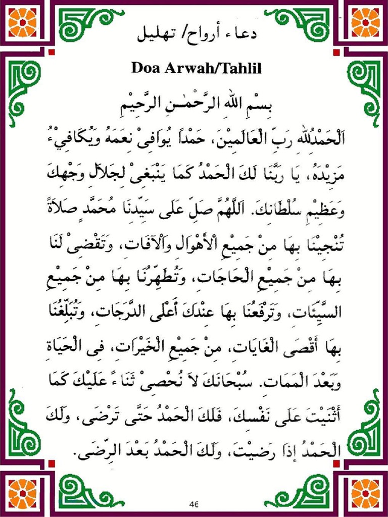 TAHLIL RINGKAS DOA TAHLIL ARWAH Panduan Lengkap Rumi Ini adalah panduan lengkap bacaan tahlil ringkas dan doa tahlil arwah. Tahlilan adalah ritual doa yang umum ditemui dalam masyarakat Indonesia. Doa untuk ibu yang telah meninggal beserta artinya.
